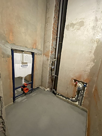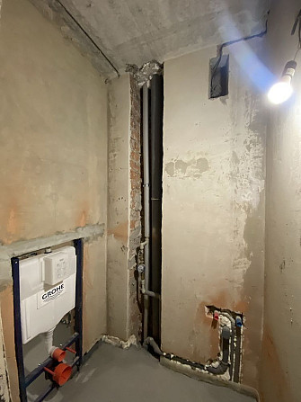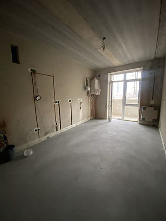 - Зроблено всі чорнові роботи: електрика, сантехніка, опалення, радіатори, тепла підлога в коридорі, санвузлі й кухні, стяжка.